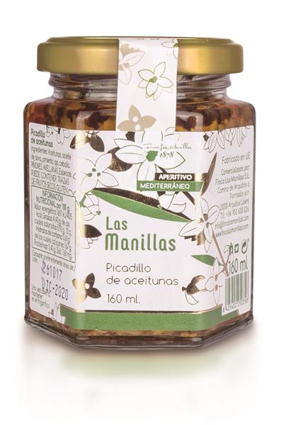 picadillo de aceitunas realizado con aceitunas picaditas, hierbas aromáticas y especies conservadas en aceite de oliva virgen extra. Aceitunas, aceite de oliva, pimiento, ajo, cebolla, piñones, avellanas y especias. Se puede utilizar como entrada con pan, queso, aliño en ensalada, verduras, patatas cocinadas, pescado...