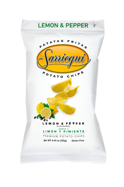 Patatas Sarriegui sabor limón y pimienta. 125 g y 40 g