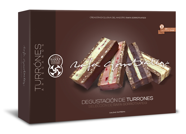 Rafa Gorrotxategi ha seleccionado sus mejores turrones elaborados artesanalmente. Los más valorados por prestigiosos gourmets. Una cuidada degustación de mini turrones de tierna trufa de mandarina y yusu, Armagnac con ciruelas, ruby y fresas y yogur con grosellas. Inmejorables.