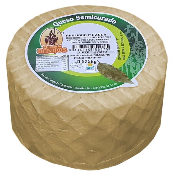 QUESO ELABORADO CON LECHE DE VACA Y CABRA PASTEURIZADA, POSTERIORMENTE AHUMADO Y MADURADO EN TORNO A 90 DÍAS, DE TEXTURA SEMICREMOSA Y QUE EN BOCA MEZCLA LOS SABORES DEL AHUMADO CON UN LIGERO TOQUE A MANTEQUILLA. RECIENTEMENTE AGRACIADO CON MEDALLA DE BRONCE EN WORLD CHEESE AWARDS 2019 - 2020.
