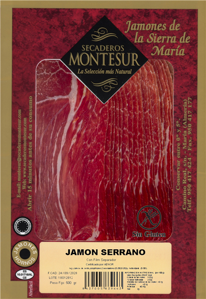 Es así como conseguimos un producto final de calidad con grasas finas y de gran delicadeza. Y todo para que usted, finalmente, pueda degustar en toda su esencia, el mas sabroso de los productos genuinamente españoles: los jamones curados en la Sierra de María por Secaderos Montesur.