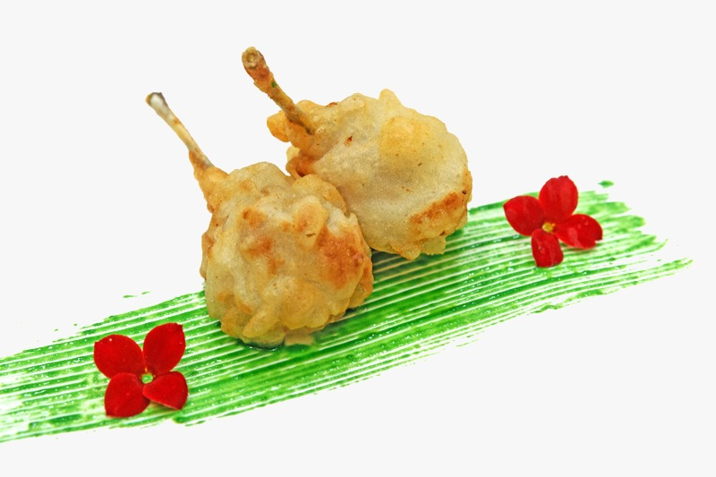 Piruletas en base a ancas de rana deshuesadas, para comer de un solo bocado con un exterior crujiente y esponjoso envolviendo la jugosidad de su carne.