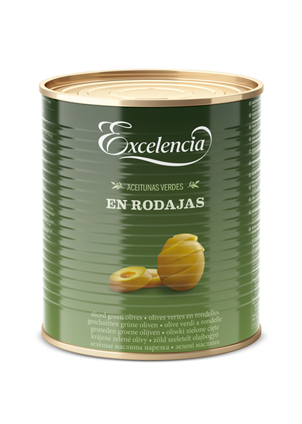 La aceituna verdes en rodajas en lata de 1560g.Tiene un sabor particular muy suave. Las aceitunas laminadas son ideales en ensaladas, pizzas y muchos más platos.