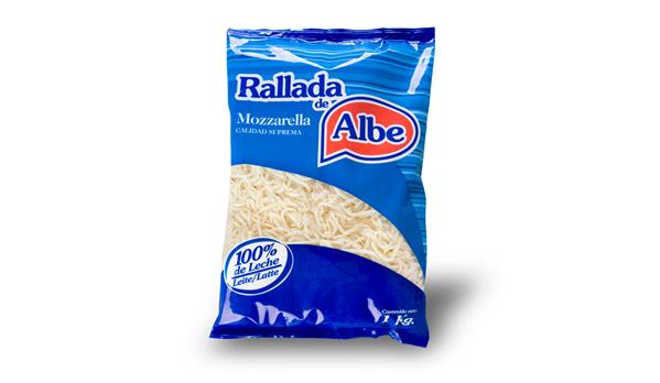 MOZZARELLA PREMIUM HECHA POR LECHE 100% RALLADA BOLSA 1 K. MARCA ALBE