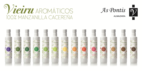Amplia gama de Aceites aromáticos obtenido mediante la maceración de Aceite de Oliva Virgen Extra ‘Vieiru’ procedente de la variedad autóctona de aceituna Manzanilla Cacereña, cultivada en el norte de la provincia de Cáceres (Sierra de Gata).Mezcla las propiedades saludables del aceite de oliva virgen extra y cada condimento, añadiéndole diferentes matices de sabor.