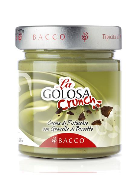 ¡Nuevo producto en la empresa Bacco! Un encuentro mágico entre la clásica salsa de pistacho y una cascada de granos de galleta de cacao para un sabor crujiente desde el primer sabor. La nueva versión de la crema de pistacho Bacco es adecuada para todas las ocasiones. Desde el desayuno hasta la merienda, desde las fiestas de cumpleaños hasta las celebraciones más variadas, la crema Crunch te sorprenderá al dejar que el crujiente de las galletas y la cremosidad de la pasta pura de pistacho exploten en tu boca Disponible en tamaños de 200 gr y 1 kg