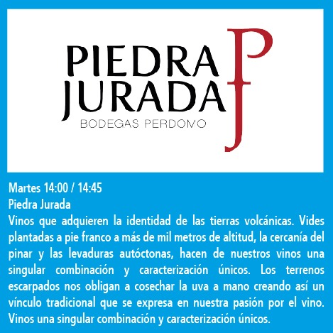 El Viejo Perdomo, encontró una piedra de enorme tamaño con un orificio (en Canarias, juro) donde poner su vino durante toda la jornada de trabajo manteniendo esta su temperatura. Esta piedra, da impulso a sus nietos, Frades y Juan Perdomo, para seguir con el cultivo de la vid, naciendo de forma admirable, los vinos de Piedra Jurada en el año 2000. En el año 2013, la cuarta generación, Lucía y Patricia, toman el relevo generacional y continúan con la labor de cultivo y elaboración en el paraje de Briesta, en el municipio de Garafía. Los vinos adquieren la identidad las tierras volcánicas evolucionadas (zona más antigua de la isla), vides plantadas a pie franco a más de mil metros de altitud, la cercanía del pinar y las levaduras autóctonas en bodega.