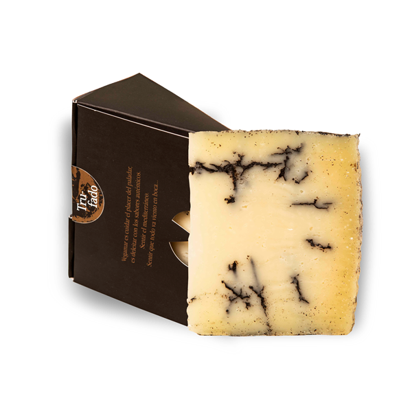 Cada queso contiene 100 gramos de dicha trufa negra. La corteza del queso es natural, de color ocre suave con manchas corteza.