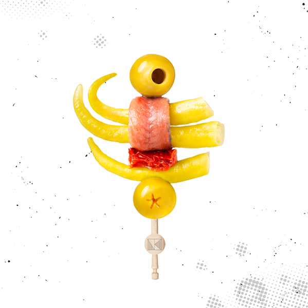- COHETES: Dícese de la banderilla más icónica, elaborada por manos diestras y aderezada con la despensa seleccionada del laterío en conserva, salazones y ahumados del mar sin olvidar los productos y encurtidos de nuestra tierra.
