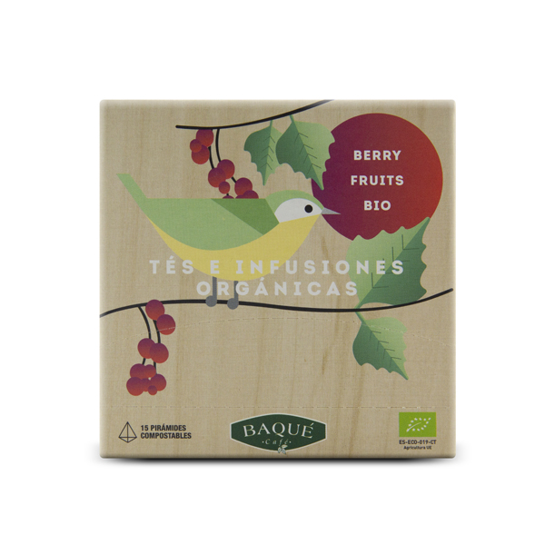Infusión de hojas de mora, piel de naranja y fresa Bio. Deliciosa infusión frutal con propiedades desintoxicantes y revitalizantes en pirámide compostable.