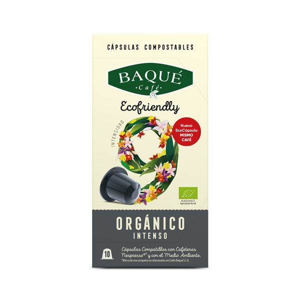 Cápsulas 100% compostables compatibles con cafeteras Nespresso®. Comprometidos con el cuidado del Medio Ambiente, hemos desarrollado esta solución innovadora, lanzando las primeras cápsulas compostables del mercado compuestas de materiales barrera, que evitan la oxidación y preservan la calidad de nuestro café Baqué de siempre. Se desechan en el contenedor orgánico y se degradan completamente en tan solo 3 meses sin dejar ningún residuo, en condiciones óptimas de humedad, temperatura y oxígeno.