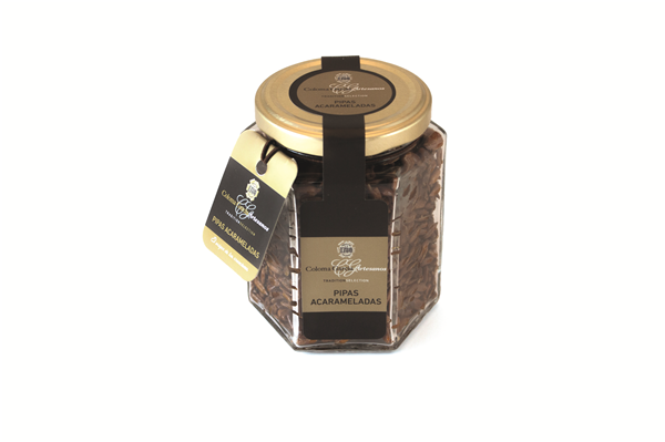 pipas peladas con una fina capa de caramelo.