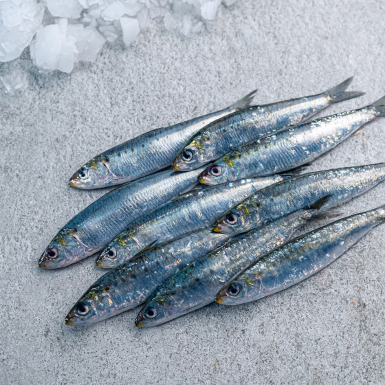 La sardina es un pequeño pelágico del grupo del pescado azul muy rico en ácidos poliinsaturados omega 3 y omega 6, que son la mejor medicina que se le puede dar tanto a adultos como a niños. Este delicioso pescado combina muy bien a la plancha o en los típicos espetos (a la brasa), viven en grandes grupos que nadan cerca de la superficie y por eso su pesca se realiza con barcos de cerco o traíñas.