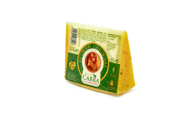 Queso elaborado con leche de Cabra y recubierto en su exterior con pimentón natural (obtenido a partir del secado y molido del pimiento rojo), le aporta un atractivo color rojizo al queso, además de un aroma y sabor muy especial. La unión de la cremosidad de la leche de cabra y sabor del pimentón natural, es una de las mejores combinaciones posibles en quesos.