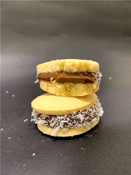 Tradicionales dulces Argentinos hechos con galletas de maicena, rellenas con dulce de leche y decoradas con coco rallado