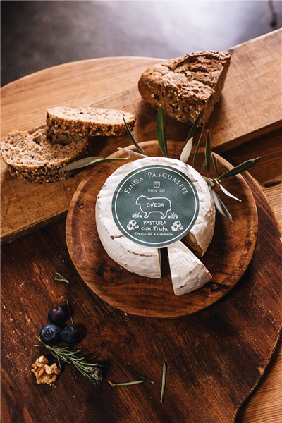 Queso tierno de leche pasteurizada de oveja, corteza enmohecida y trufa negra.