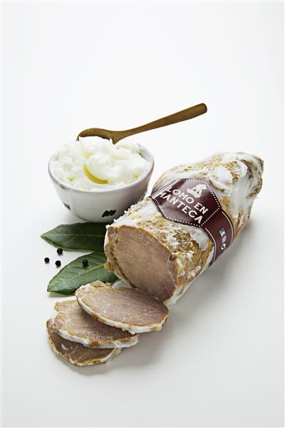 Lomo de cerdo frito en manteca de cerdo iberico. Lomos de cerdos marinados en especias naturales, bañado en manteca de cerdo iberico. Un proceso de elaboración totalmente artesano, así se elabora esta joya gastronómica exquisita para el paladar. Lomo de cerdo listo para comer. Productos artesanos de la serrania de Ronda.
