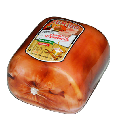 Jamones seleccionados deshuesados y desgrasados, tratados en una salmuera dulce de larga maduración, con hierbas y especias aromáticas. Cocidos lentamente al vapor proporcionando una jugosidad y textura insuperable, de agradable y suave bouquet, bañado en una gelatina caramelizada dulce y comestible, que le confiere un aspecto atractivo bombón de jamón. Su consumo proporciona una alimentación sana y de gran valor nutritivo.