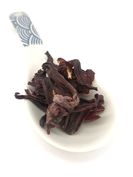 Flor de hibiscus comestible con sabor dulzón, ideal para una infusión teñida de rosa.
