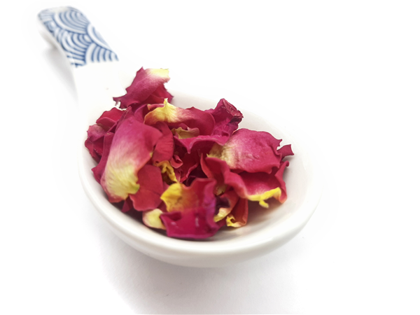 Pétalos de rosas mini con sabor herbáceo y textura crujiente, ideales para decorar y acompañar pastas de té con notas de amor.