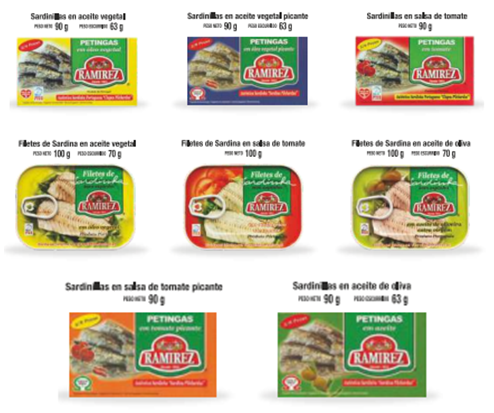 Amplia gama de conservas de sardinillas en latas de 100 gramos. Los sabores que se incluyen en esta gama son: