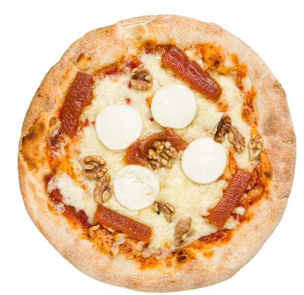 PIZZA MAMAMASA VEGETARIANA DE QUESO DE CABRA, NUECES Y MEMBRILLO
