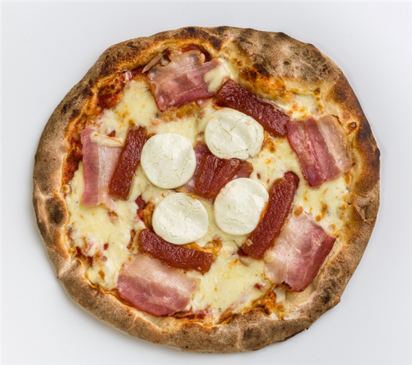 PIZZA XL DE BACON, QUESO DE CABRA Y MEMBRILLO