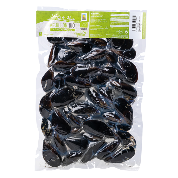 Mejillón bio cocido al natural. Mytilus galloprovincialis.