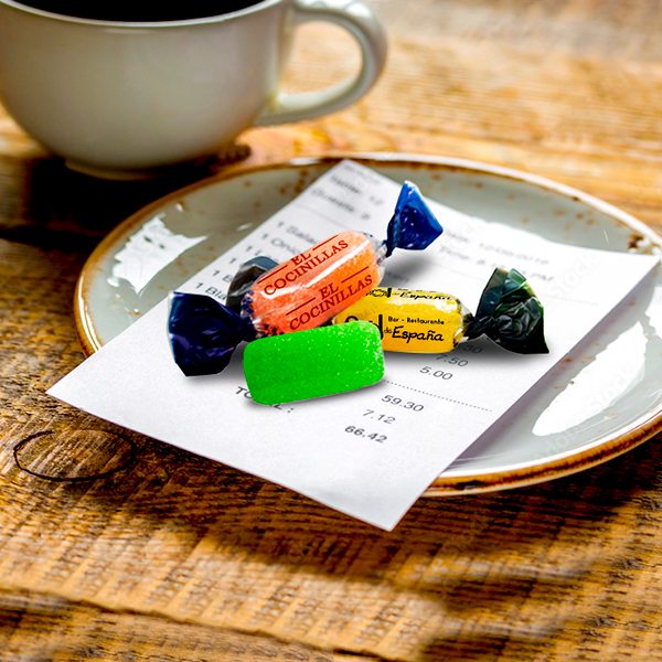 Si quieres dar detalles de fidelización para FINAL DE CUENTAS fabricamos cualquier tipo de caramelos o chicles personalizados con tu marca.