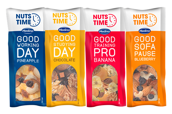 Gama de snack compuesta por 4 mezclas distintas para 4 momentos del día, en formato on-the-go, desarrollado por el nutricionista Ramón de Cangas. Una combinación de frutos secos, frutas deshidratadas y chocolate en un caso, sin sal y sin azúcares añadidos, no más de 120 kcal. por cada bolsa de 25 grs. Un aporte energético diario, sano y nutritivo.