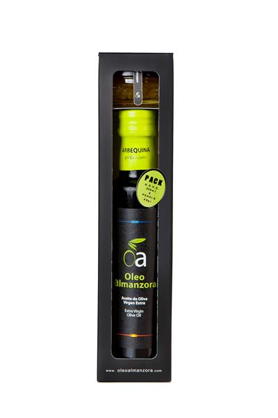 a Aceite de Oliva Virgen Extra Oleoalmanzora Arbequina 100ml gourmet dorica Aceite de Oliva Virgen Extra de la variedad Arbequina, procedente del bajo almanzora (ALMERÍA - ANDALUCÍA), un lugar idóneo para el cultivo del olivar.