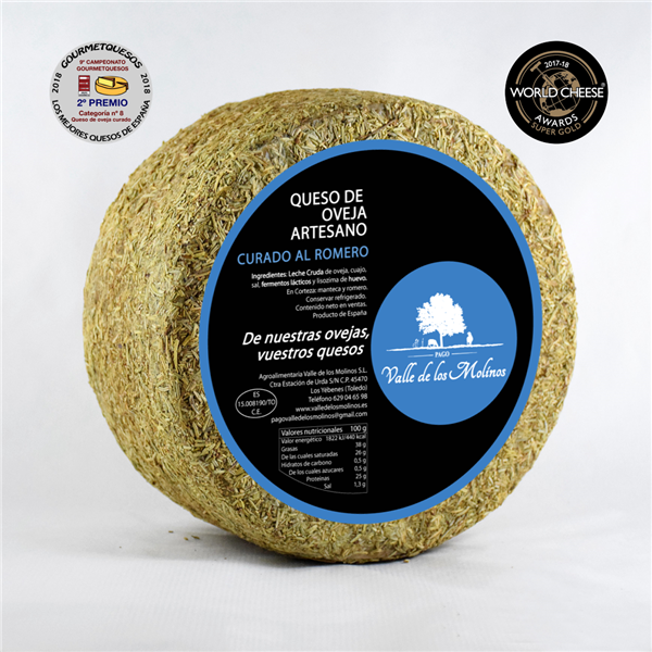 El Queso Curado en Romero se elabora de manera artesanal con leche cruda de oveja. Durante 6 meses el queso madura de manera natural y controlada en bodega alcanzando una textura firme, compacta de color marfil y agradable e intenso sabor en boca. Los dos últimos meses el queso se afina con hojas de romero en la corteza para aportar un aroma floral mediterráneo, que hacen de él un queso sobresaliente.