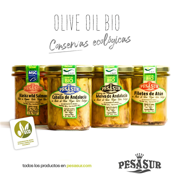 La calidad de las conservas PESASUR en AOVE ecologico.