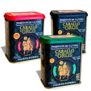 Pimentón de la Vera CABALLO DE OROS se comercializa en tres sabores:
