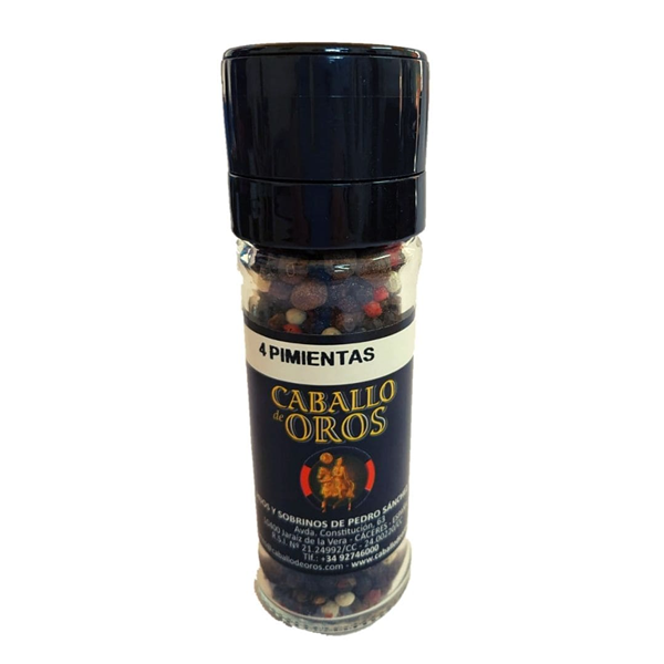 La pimienta 4 estaciones es una mezcla de pimientas de diferentes partes del mundo que dotará de un sabor exquisito a tus mejores elaboraciones culinarias. Uno de los mejores ingredientes para tu cocina. Además viene envasado en molinillo, un formato perfecto para conservar intactas todas las cualidades de las pimientas.