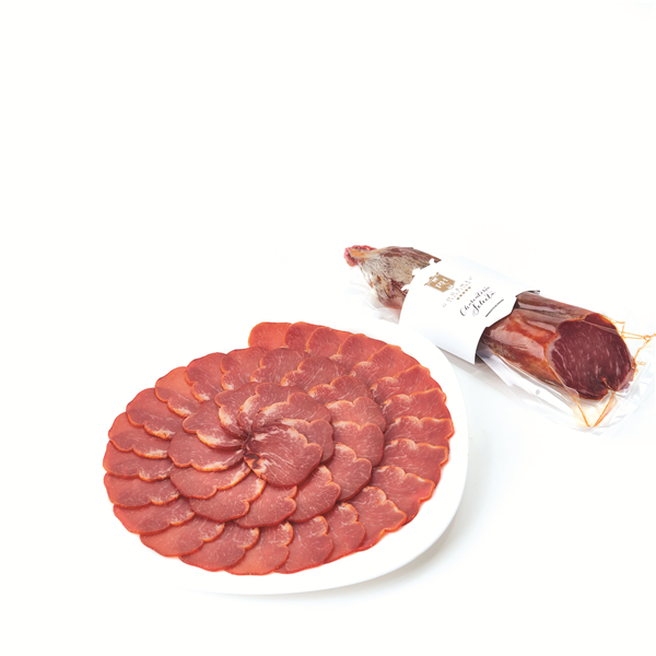 La caña de lomo de cebo ibérica procede de cochinos criados en (intensivo), en granjas con grandes corrales naturales para que los animales puedan ejercitarse y así conseguir que la grasa se infiltre en la carne de manera notable. Todo esto acompañado de una buena base alimentaria compuesta de piensos naturales, nos lleva a conseguir este equilibrio de textura, calidad y aroma.