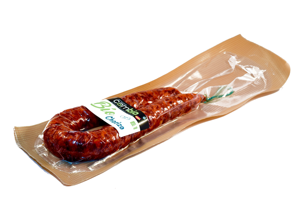 Chorizo Ecológico picante de 200 gramos procedente de los cerdos de nuestra ganadería. Receta sencilla y resultado delicioso; curado de forma artesanal. Sin gluten, sin transgénicos, sin lactosa, sin colorantes.
