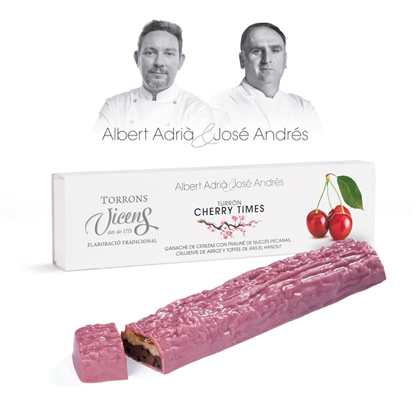 El nuevo turrón Cherry Times nace de la fusión entre la experiencia, la creatividad y la amistad de los dos chefs unidos por el espíritu emprendedor e inquietud colaborativa, quienes comparten sus conocimientos gastronómicos por una gran causa, ayudar a recaudar fondos por el “San Juan de Dios Pediatric Cancer Center Barcelona”. Albert Adrià y José Andrés han colaborado de manera altruista y completamente desinteresada en este proyecto destinando sus beneficios, al igual que Torrons Vicens, a recaudar fondos para el “San Juan de Dios Pediatric Cancer Center Barcelona”.Torrons Vicens ha hecho fluir la unión del talento de los dos prestigiosos chefs para crear este delicioso e innovador turrón bajo la experta mirada del Maestro turronero Ángel Velasco y con un denominador común, la pasión por el turrón.La calidad, la proximidad y la tradición marcan el origen de este turrón que a través de su ingrediente principal y original formado, nos permite viajar a un pasado lleno de recuerdos personales, al espíritu de un pueblo y de una profesión; En los campos de cerezos.