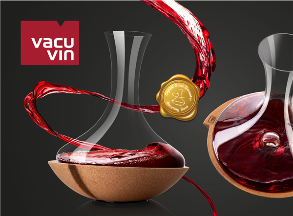 El Decantador Giratorio es un decantador de vino con una base giratoria. Decantar y rotar el vino ayuda a ensalzar el sabor y los aromas del vino gracias a la aireación. Decantando el vino puede también separar los sedimentos del vino, sirviendo con cuidado el vino dentro del Decantador.