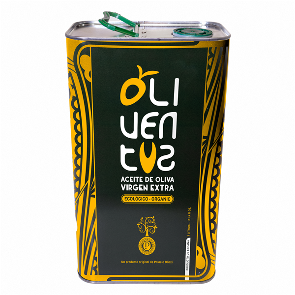 Igualmente disponemos de unos formatos más grandes de aceite virgen extra ecológico en formato de lata de 3 litros y de garrafa de PET de 5 litros con la marca "Oliventus", es un aceite más suave y afrutado, proveniente de una aceituna más madura.