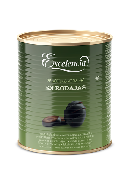 Las aceitunas negras en rodajas en lata de 1560 g. De color negro intenso con un sabor inconfundible. Cuentan con características especiales como son la finura de su pulpa, la baja relación pulpa-hueso y la textura que mantiene una vez aderezadas. De textura carnosa y bajas en sal, son ideales como condimento en platos que van desde las ensaladas, pizzas, hasta las recetas más vanguardistas.