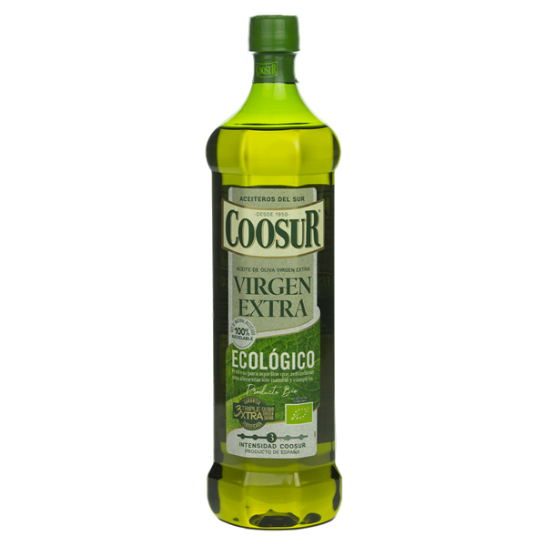 El Aceite de oliva virgen extra ecológico de Coosur es un producto perfecto para aquellos que reivindican una alimentación natural y completa el segmento del virgen extra de Coosur. Este producto se envasa en material PET 51% reciclado y permite su reciclado al 100%. Un aceite de oliva ecológico pensado para que puedas disfrutar del sabor de siempre en tus recetas favoritas. Disponible en un formatos pet de 1 y 5 litros.