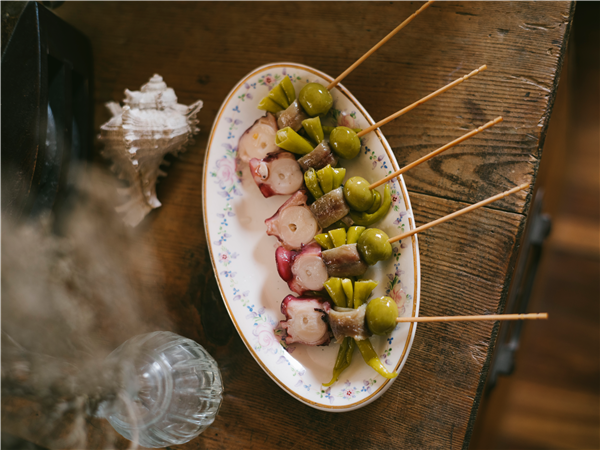 Dicho aperitivo está compuesto por anchoa, aceituna y su ingrediente principal, la piparra (guindilla dulce).