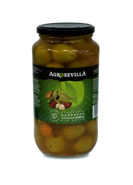 Disfruta de la auténtica receta de nuestras aceitunas Gordal al estilo Gazpacha. Nuestras aceitunas cuidadosamente seleccionadas y marinadas con una mezcla de aceite de oliva, vinagre y una combinación de ajo, pimentón y laurel. Pero eso no es todo: nuestra receta estilo gazpacha también incluye una mezcla de encurtidos como pepinillo, zanahoria, cebollita y guindilla, lo que agrega un extra de sabor, variedad y texturas a nuestras aceitunas.
