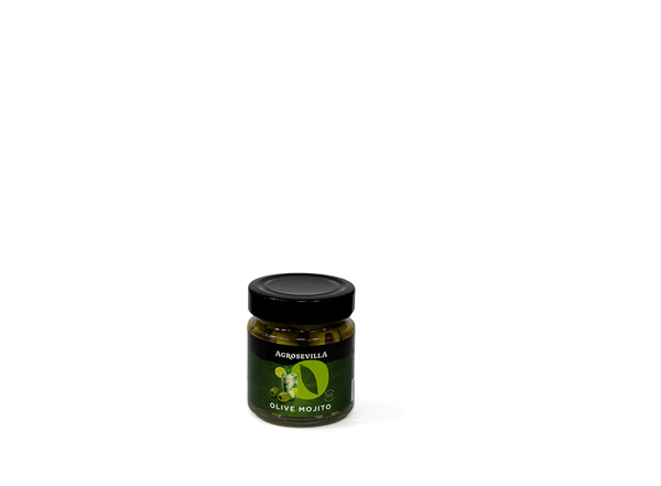 Aceitunas hojiblanca sabor mojito -sin alcohol-, con notas de menta y limón características del clásico cóctel cubano que destaca por su sabor fresco y cítrico. De color verde oliva y dorado por la fusión con los ingredientes del mojito, las nuevas aceitunas con sabor a mojito de Agrosevilla son la alternativa ideal para aquellos que buscan un nuevo sabor, refrescante, original y atrevido.