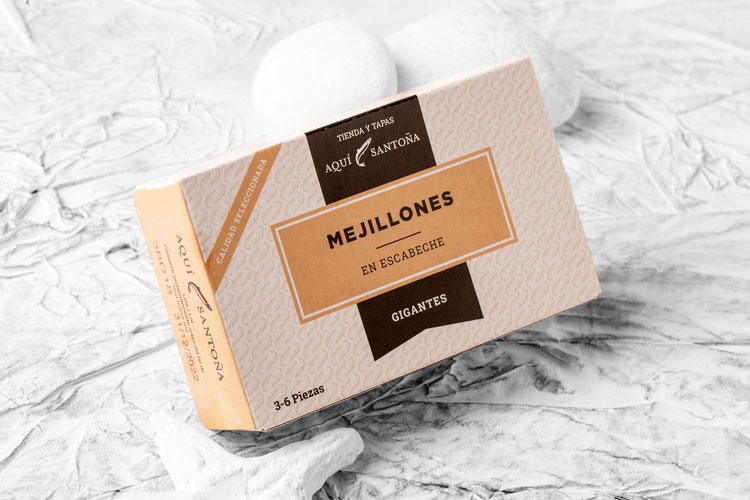 Los mejillones gigantes Aquí Santoña maridan a las mil maravillas con todo tipos de vinos y cervezas tipo pilsen. De sabor a mejillón en escabeche y con una textura tierna y jugosa, combina a la perfección con patatas fritas y cocidas, aunque también combina con ensaladillas y pastas. Cada lata contiene 120ml, entre 3 y 6 mejillones en escabeche.