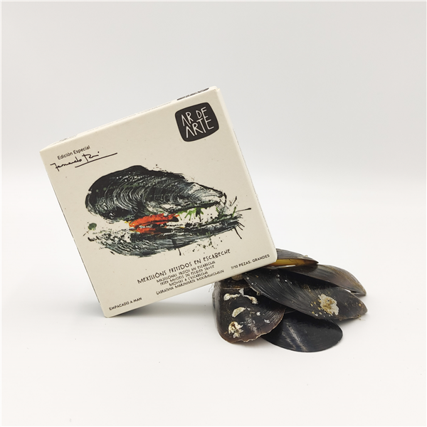 Mejillones de rías gallegas fritos en escabeche con aceite de oliva.