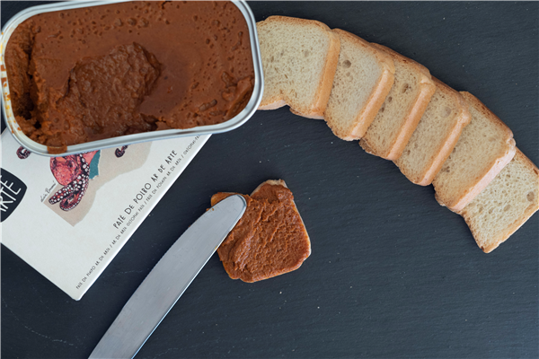 Paté hecho con pulpo y sofrito casero con base de tomate natural. Sin aditivos