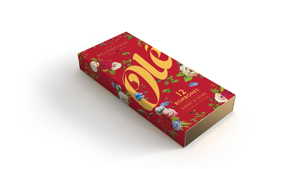 Una colección de bombones única: SERIE OLÉ. Basándonos en una diferenciación total de nuestro producto, en la que los sabores sea la temática para definir España compuesta de 12 bombones: TURRÓN • NARANJA CON AZAHAR • CREMA CATALANA • ARROZ CON LECHE • HIGO Y FRESA • ACEITE DE OLIVA Y ROMERO