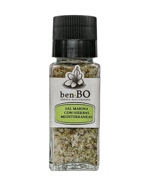 Sal marina del Mediterráneo condimentada con una mezcla de Orégano, Albahaca, Tomillo, Romero, Ajedrea y mejorana . Para sazonar cualquier comida, durante o después del cocinado.Con esta sal se puede aliñar cualquier plato dado a su sabor natural a hierbas del monte. Envasada en tarro de cristal con o sin molinillo